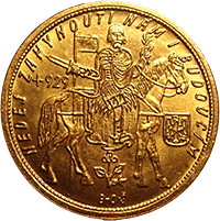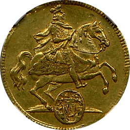 このコインは神聖ローマ時代のザクセンで作られた1ダカット金貨です、表面は当時の領主フリードリッヒ・アウグストで騎乗の姿です。直径2センチほどの小型の金貨ですが、状態もよくかわいらしいコインです。