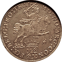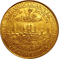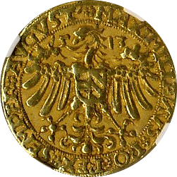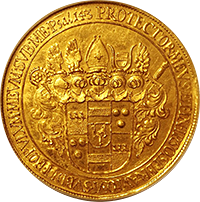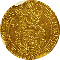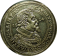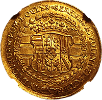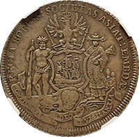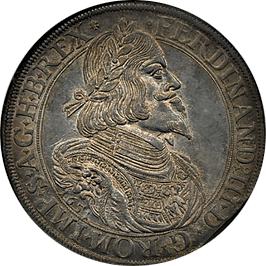 神聖ローマ帝国時代に現オーストリアのグラーツという街で作られたターレルです、肖像はフェルディナンド3世でハプスブルグ家の王様です、このコインはさして珍しいコインではないのですが、本コインのような完全未使用状態のものは稀です、このコインはNGC社の鑑定で65となっており、これは同社の本コインにおける最高評価です、ちなみに次に高い評価は62ですので、本コインの状態の良さがわかります。