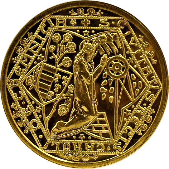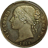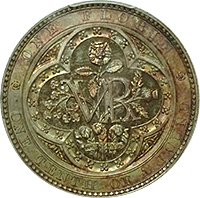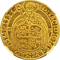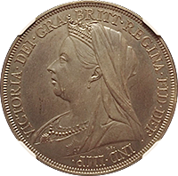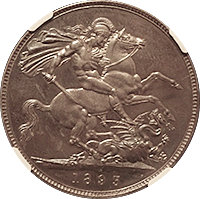 このコインはよく「世界で最も美しい銀貨」と呼ばれる、通称“ゴシック・クラウン”です、ゴシック・クラウンは全部で8000枚作られましたが、(わずかな手変わりを除き)本コインのようにUNDECIMO”と呼ばれるタイプと“プレーンエッジ”と呼ばれるもに大別できます。通常後者のほうが高値で売買されるのですが、本個体のようにMS66ともなればちょっと別格です、国内のオークションで出てくるUNDECIMOはせいぜいMS64程度までです。NGC社のUNDECIMOタイプの銘柄は294枚と、比較的多くの個体が鑑定されていますが、最も多いのはAU58からMS63までで、228枚がこのレンジに集まります。本個体のようにMS66の高評価コインはわずか4枚のみで、その下のMS65鑑定ですら6枚に過ぎません。ご参考までに最高評価はMS67でたった1枚のみです。したがって本個体はNGCで294枚中2番目の高評価コインということになります。