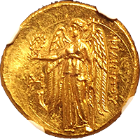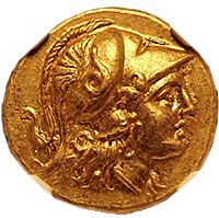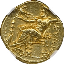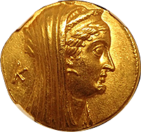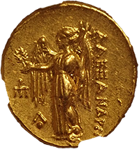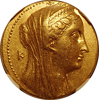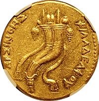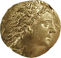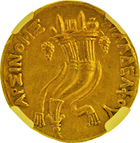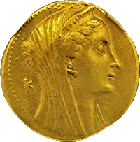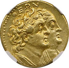 このコインはプトレマイオス朝エジプトのプトレマイス3世(BC24-222)統治下で作られた大型の金貨です。重量は28グラム近くもあり古代最大の金貨といってよいでしょう。状態もよく大変見栄えのするコインでした。おもわぬ安値で落札でき、おどろいた記憶が残っています。
