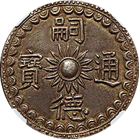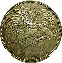 中国コインは状態の悪いものが多いのですが、本コインの場合は、めったに数字のついた個体を見かけることはありません。しかも本コインのようにAU以上の評価がつくコインは、さらに希少性が高く将来性は抜群です。ただし国内コイン商の店頭での、本コインのようにAU以上の鑑定済みコインの売買事例はほとんどなく、標準価格の掲載は「参考値」とさせていただきました。