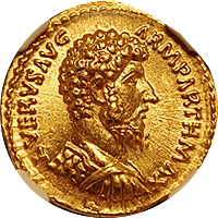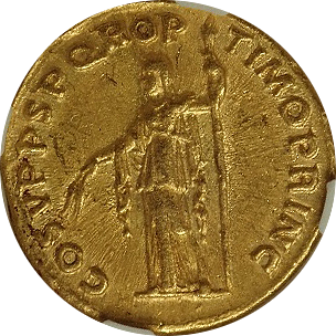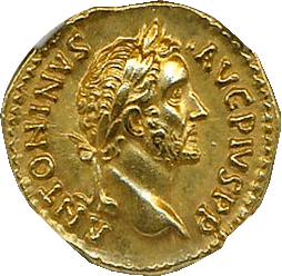 このコインは帝政ローマのご賢帝の一人、アントニウス・ピウス時代(AD138-161年)に作られたアウレウス金貨です。状態はよく、皇帝の表情が克明に刻まれています。1900年近くも前に作られたコインには見えません。