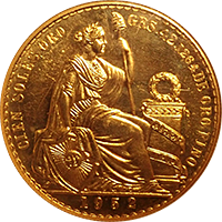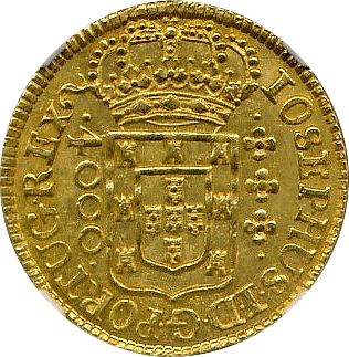 このコインはブラジルのホアン5世統治下に発行された20,000レイス金貨です、なんと重さが54グラムほどあり、ずっしりと重みのある金貨です。リーマン・ショック直後の数年このコインは急騰しましたが、その後はやや下げ、ここ数年は動いておりません。逆に割安感がでてきたと思います。