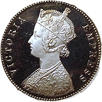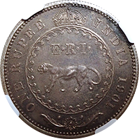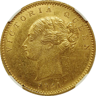 イギリス統治下でイギリス製の鋳造機で発行された金貨です、精密の作られていてきれいなコインです、状態もこの銘柄にしては準最高鑑定レベルです。この銘柄はイギリス製の鋳造機によって発行されており、総じて状態は良きのですが、それでも平均的な状態はMS63あたりです、本貨はMS64ですから平均よりやや高状態でした、近年人気が出てきたコインでインドコインの収集家なら持っておきたいコインです。