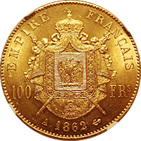 フランス1862年パリ鋳ナポレオン100フラン(登録番号184)