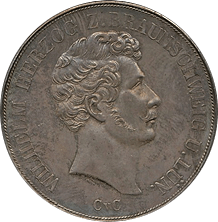 1843年鋳造、ドイツ、ブラウンシュバイク・ウォルフェンビュッテルの2ターレル(登録番号019)