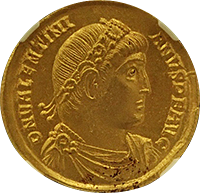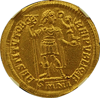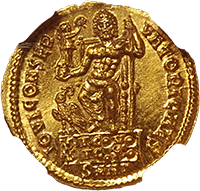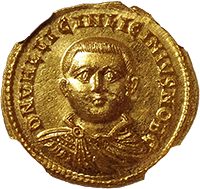 大半のアウレウスは君主などの横顔ですが、この銘柄は正面から描かれた希少なデザインです、僕が知る限り正面アウレウスは、本銘柄とリキニウス1世(皇帝)時代のアウレウスだけです。本銘柄はリキニウス2世が執政官(カエサル)に就任し5年目を記念して発行されたアウレウスです、執政官は皇帝ではありませんが、皇帝に次ぐ権威を持っていました。めったに出てこない金貨で、過去の相場で見るべきものはありません、フリードバークではCh EFがUSD 40,000と評価されています、本貨はセンターが良いですし、摩耗やキズ、修正痕なども見当たりません、素晴らしいウラのゼウスの肖像も摩耗なくハッキリ打たれており、まれにみる高状態でした。スタートビッドは40,000ユーロでしたが、スタートビッドで取れる可能性が高いと考えました、実際には42,000ユーロでしたがそれでも十分な成果でした。