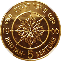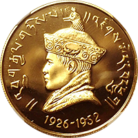 ジグメ・ワンチュク王の王継承40年を記念して発行された大型金貨です、同時に1セラタムと2セラタムも発行されていますが、本銘柄が最高額面です。記念金貨なので発行数は少なく598枚のみです、なお同時に通常貨も発行されていますが、そちらはやや多く発行され800枚です。重さは約40グラム、金の純度は91.7%、したがって一枚当たり1.18オンスほどの金が含まれています、状態はPF69 Ultra CameoですからNGC社の最高鑑定です。なお同時にプラチナ貨も発行されていますが、そちらはさらに希少で50枚しか発行されていません。いずれも現代コインではありますが、アジアはこの時代の現代コインですら今後有望だと思います。