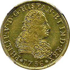 スペイン1704年フェリペ5世の8エスクード(登録番号186)