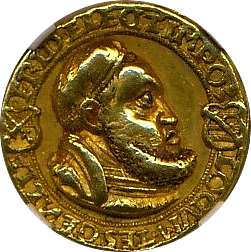 ルイ13世から16世統治下にかけ発行された金貨は、ルイ・ドール(ルイの金貨)と呼ばれています。本コインはルイ・ドールの最初期のコインで、この程度の状態のものは稀です。私が最初に設定した応札上限は44万円でしたが、なんとか上限近くの42万円(オークションハウスへの手数料を除く)で落札することができ、ホッとしたのを今でもよく覚えています、アジャストメントマーク(量目調整のためのキズ)もほとんどなく、大変良いコインでした。