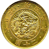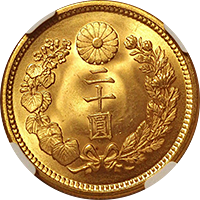 足元の新20円金貨は、並み年の並み状態(MS63程度)ですら30万円を越えるようになってきました、MS65なら50万円越えです。新10円ならMS63が17万円ほど、新5円は意外と発行数が少なくMS63でも17万円ほどはします。明治新金貨は発行期間が長いだけに特年号があり注意が必要です、新20円なら明治40年から42年の3年号はいずれも希少でMS63でも100万円超え、新10年なら明治37年と40年が特年でいずれもMS63で40万円を越えます。