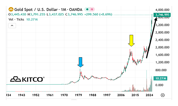(金の現物価格1935年以来の推移:Kitco社のサイトより転載)