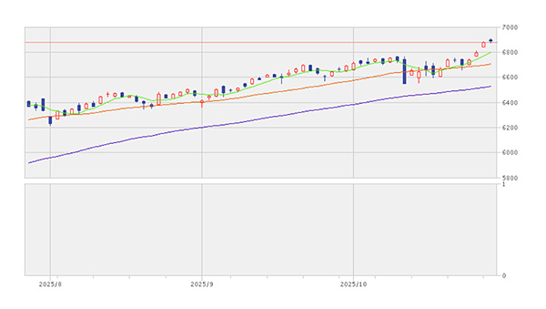 (S&P500株価指数、直近3か月間の推移:楽天証券のサイトより転載)