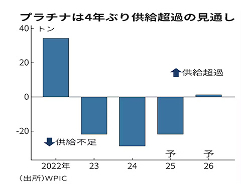 (プラチナの需給見通し、2022年以降の推移:日本経済新聞社のサイトより転載)