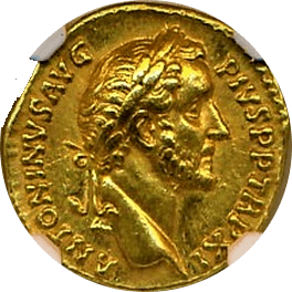 帝政ローマ、アントニヌス・ピウスのアウレウス金貨(登録番号012)