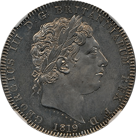 イギリスのジョージ3世のクラウン銀貨、1819年(登録番号001)