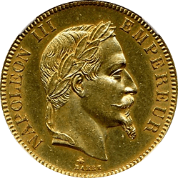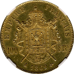 フランス、ナポレオン3世100フラン金貨1869年(登録番号021)