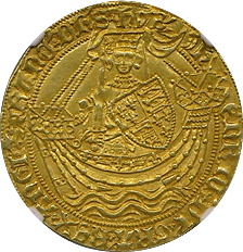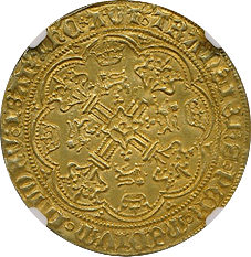 ヘンリー6世時代(1422-1433年)にイギリスで発行されたノーブルと呼ばれる金貨です、状態はNGCの鑑定でMS63で未流通状態でした、当時のNGC社の最高鑑定でしたが、いまでも準最高鑑定です。