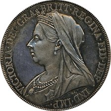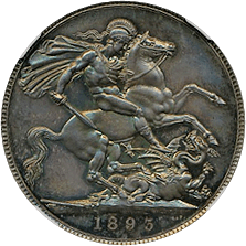 1893年に発行されたクラウン(銀貨)のプルーフ貨です、ヴィクトリアのプルーフ・クラウンはジュビリーヘッドとオールドヘッドがありますが、このコインは希少性が高いオールドヘッドのほうです、状態はNGC-PR65ですからかなりの高鑑定です。