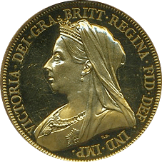 ビクトリアの5ポンド金貨は3銘柄あります、一つ目は有名な「ウナとライオン」ですが、この銘柄は記念貨なので除外したほうがいいでしょう、通常貨としては1887年発行の「ジュビリーヘッド」と本銘柄1893年発行の「オールドヘッド」です。ここのところ2銘柄ともな上がり傾向ですが、特に値が張るのは発行数が少ない本銘柄オールドヘッドです。